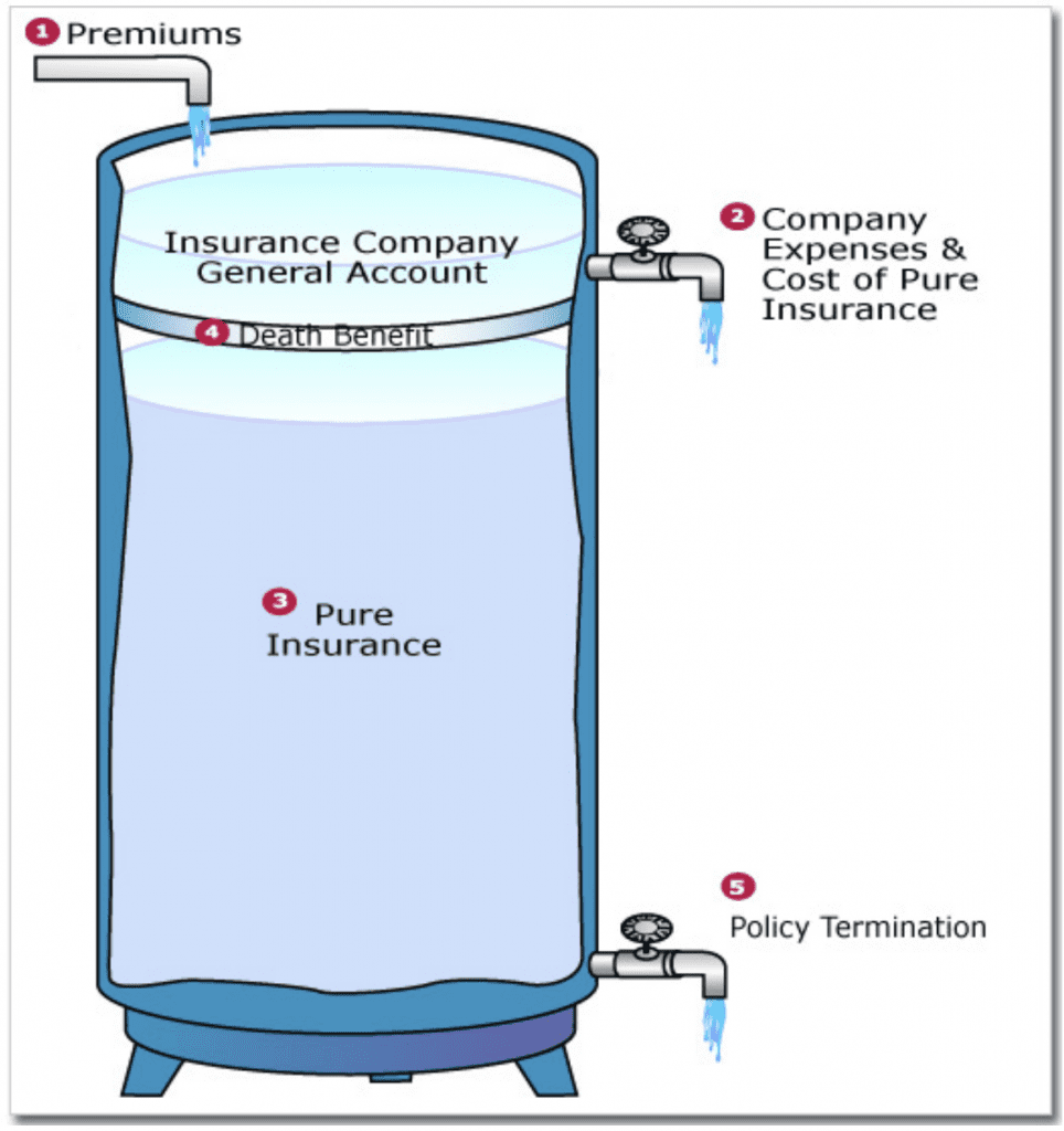 2. As you pay your premiums, the insurance company deducts all of its expenses, premium taxes, and the cost of pure insurance, or death benefit.